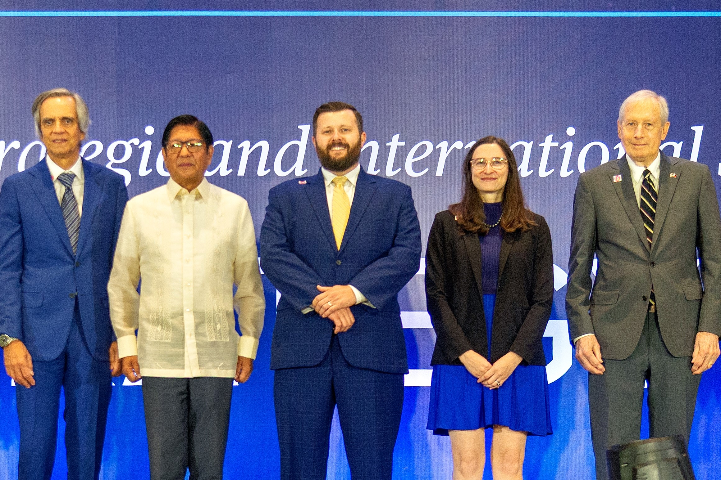 USPHS Director Enrique Razon, President Marcos, CSIS Director Greg Poling, CSIS Senior Fellow Henrietta Levin, and USPHS Executive Director Hank Hendrickson at the CSIS Manila Strategy Forum, 10 Sep 2025, Solaire Hotel, Metro Manila. Photo courtesy of CSIS.
